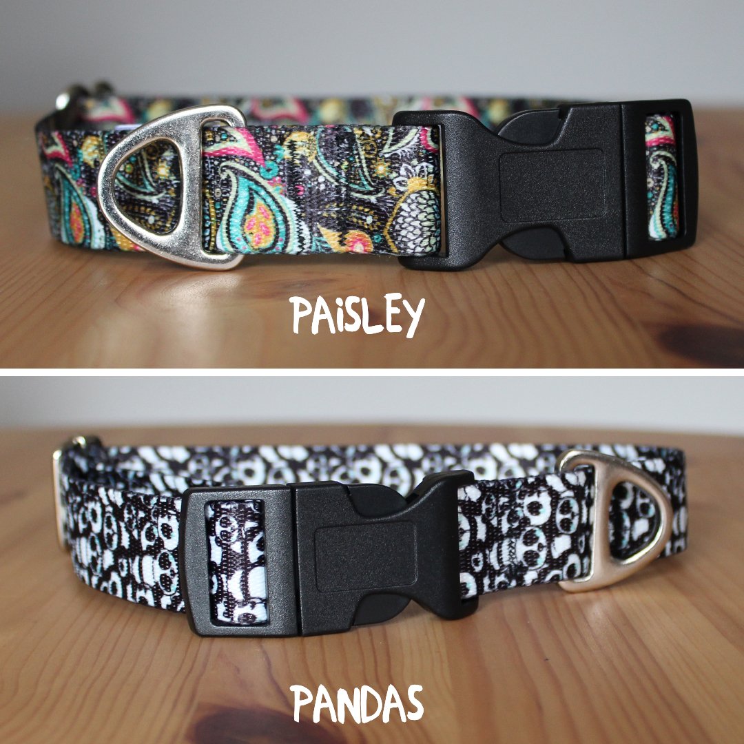 High quality 1 inch dog collar handcrafted in Dublin. It has a curved black plastic side release buckle for easy opening and closing of the collar. Each collar is made from high quality 25 mm wide nylon webbing. It's hard wearing and it doesn't take long to dry if your pooch decides to go for a swim!